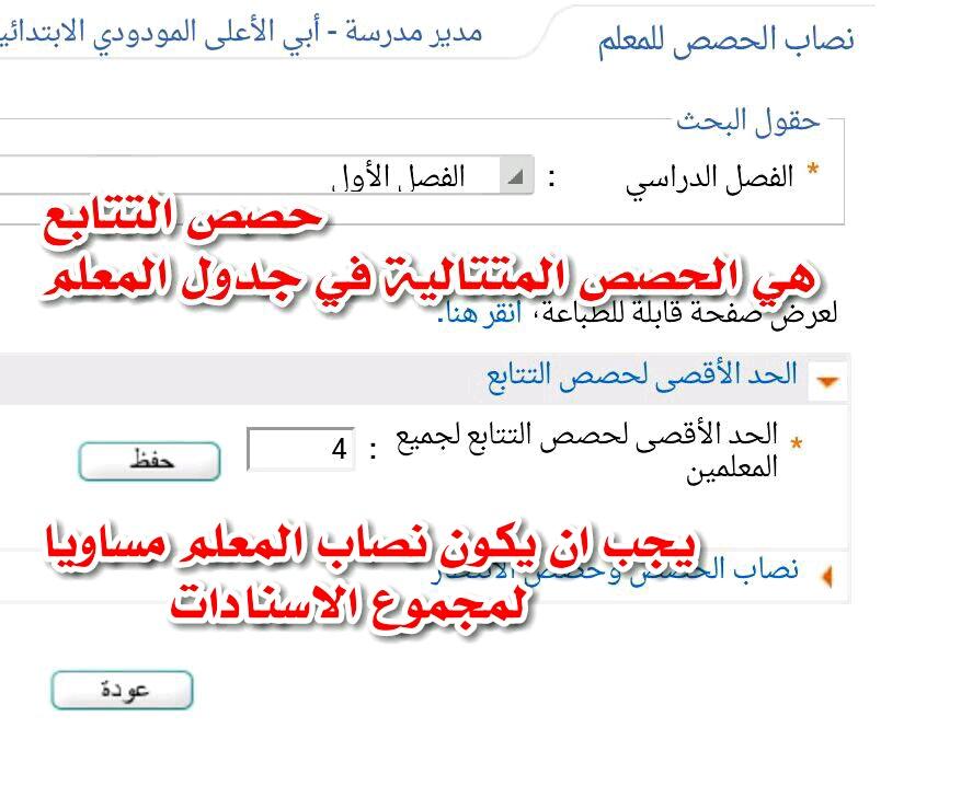 شروحات برنامج نور عمل جدول الحصص بنظام نور