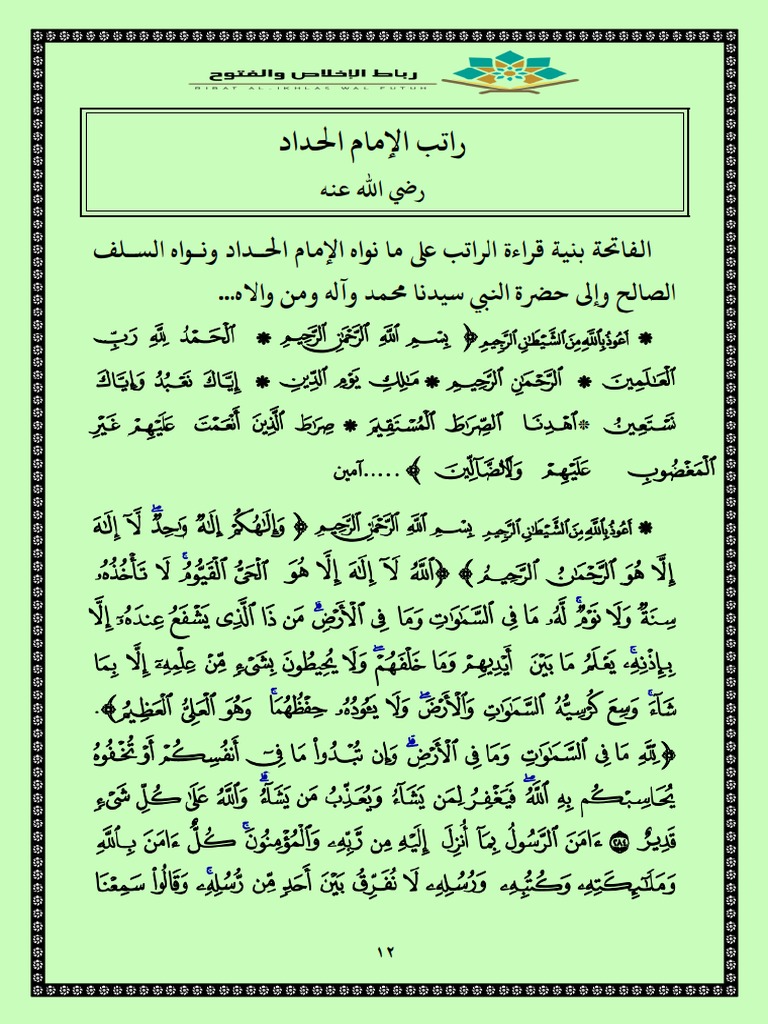 أقوال الإمام الحداد Auf Twitter راتب الحداد الفاتحة لصاحب الراتب الإمام سيدنا الشريف القطب الغوث عبد الله بن علوي الحداد با علوي