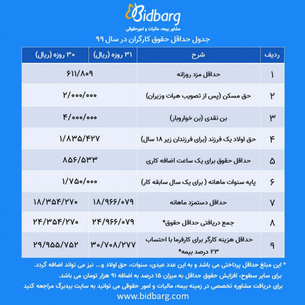 جدول حداقل حقوق و دستمزد سال 99 شبکه