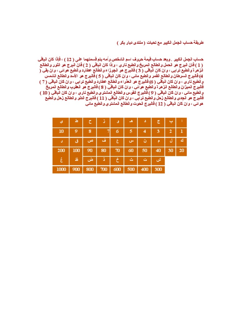 لكل حرف يقابله عدد في حساب الجمل الكبير علم الارقام والابراج Facebook