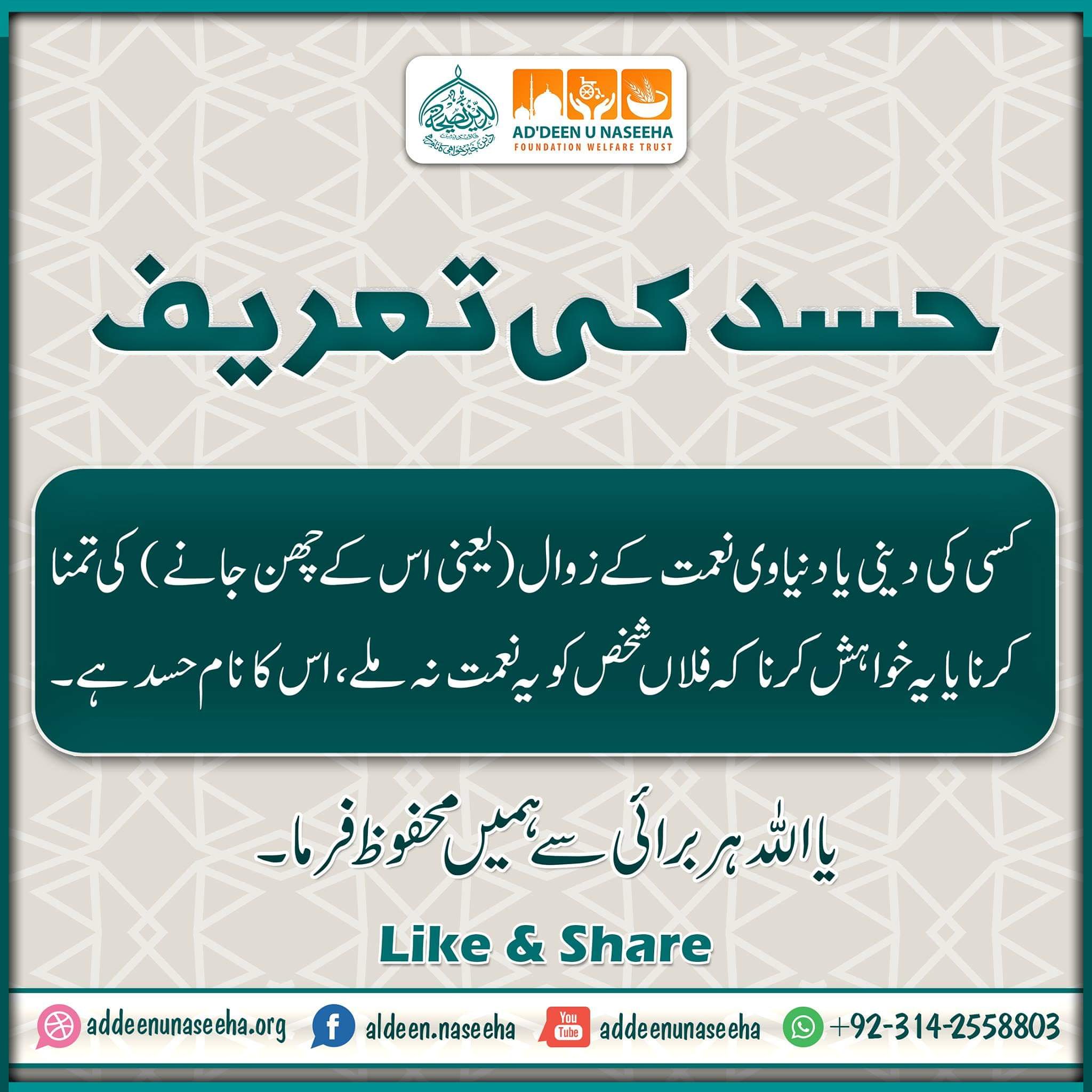 Addeenunaseeha On Twitter حسد کی تعریف کسی کی دینی یا دنیاوی نعمت کےزوال یعنی اس کےچھن جانے کی تمناکرنا یا یہ خواہش کرنا کہ فلاں شخص کویہ نعمت نہ ملے اس کا