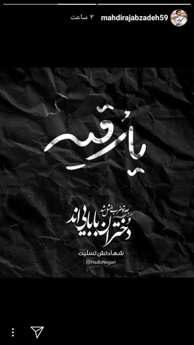 حضرت رقیه استوری. استوری شهادت حضرت رقیه س استوری تسلیت شهادت حضرت رقیه. یاریمان کن تا در انتظار روزی که حضرت مهدی عج بیاید و انتقام صورت نیلی ات را بگیرد ثابت قدم بمانیم شهادت مظلومانه حضرت رقیه س تسلیت باد. عکس نوشته شهادت حضرت رقیه س روز پنجم ماه صفر مصادف است با شهادت حضرت رقیه س که به همین مناسبت عکس نوشته هایی برای پروفایل استوری استاتوس پس زمینه گوشی و.