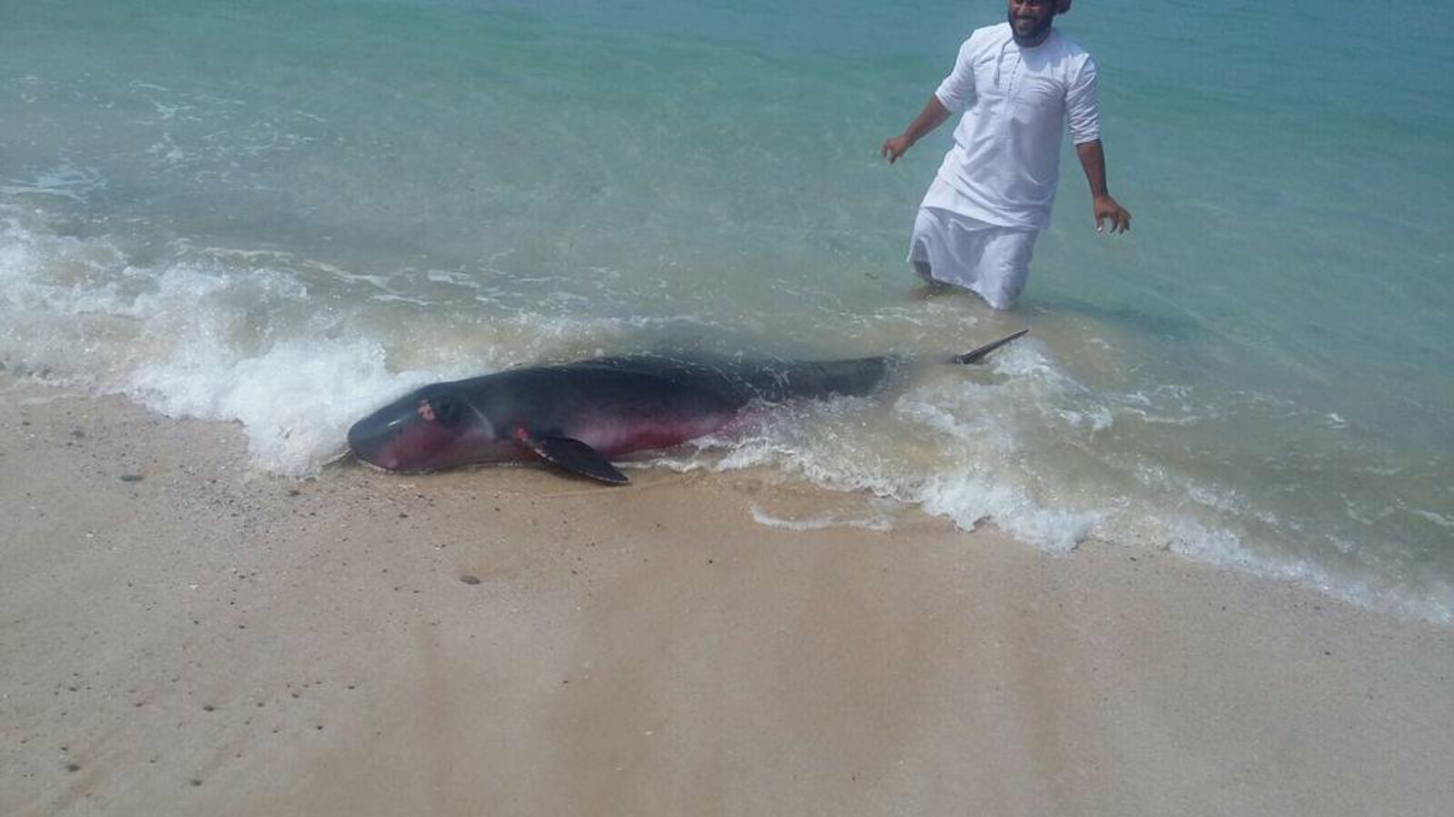 حوت العنبر يطلق الحبر بالمياه الضحلة لأول مرة الشرق الأوسط