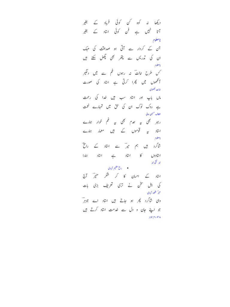 استاد پر اشعار