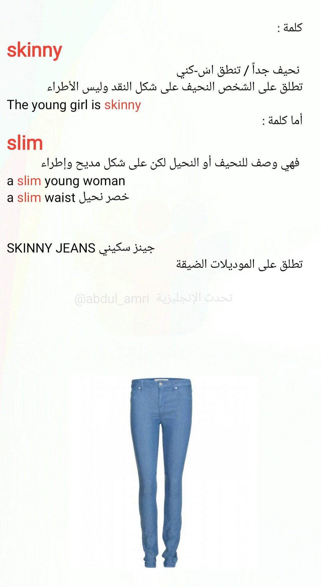 تحدث الإنجليزية On Twitter كلمة Skinny و كلمة Slim كلها تأتي بمعنى نحيل أو نحيف